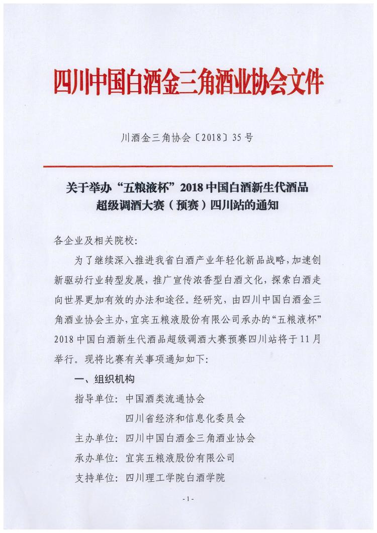 关于举办“五粮液杯”2018中国白酒新生代酒品超级调酒大赛(预赛)四川站的通知